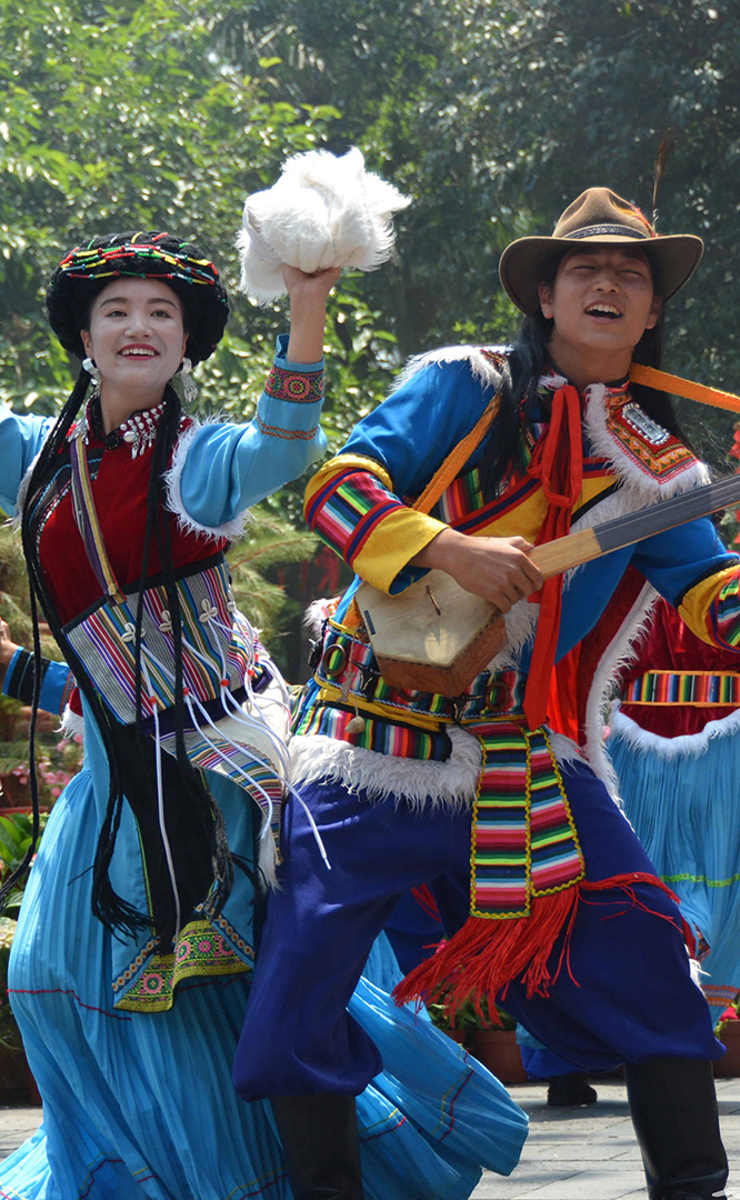 云南省境內的藏族人口約12萬,主要聚居在云南迪慶藏族自治州,少量散居于麗江、貢山、永勝、寧蒗等縣。藏族信奉藏傳佛教,白色被藏族視為純潔神圣的象征。藏族村占地21畝,村內有大小中甸地區的坡頂民居和德欽地區的雕樓式平頂民居。莊嚴神圣的藏傳佛寺,壯觀的迎賓白塔,象征吉祥和睦的“白牦牛”雕塑與獨具風格的藏式建筑互為映襯,相得益彰。藏族主要節(jié)日有:藏歷年、丹巴日古(七月夏游節(jié))、昂曲節(jié)、格冬節(jié)等;主要禮節(jié)是...